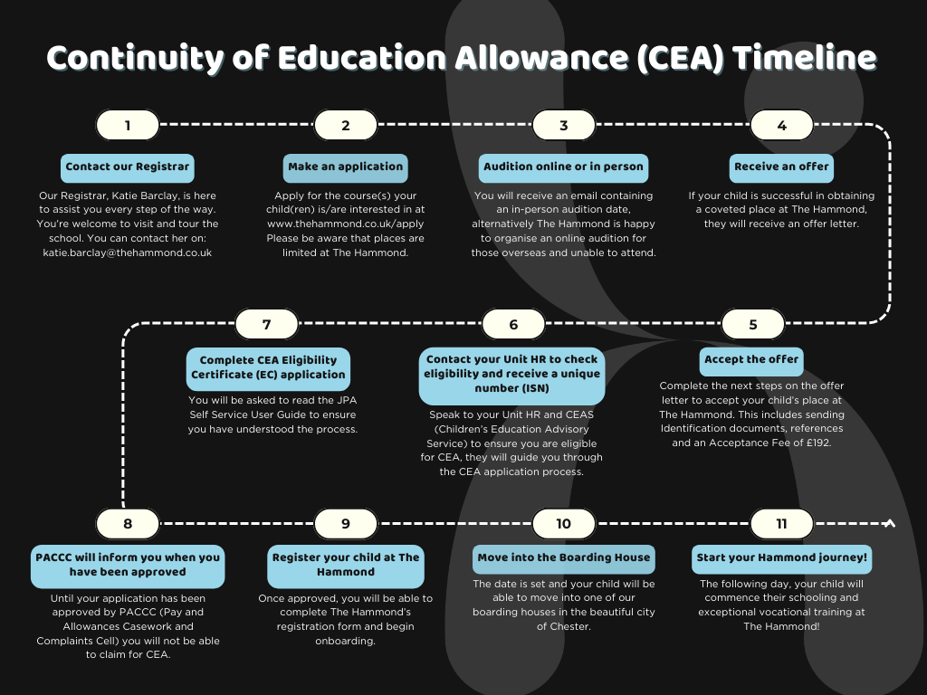 The Hammond is an accepted school for Continuity of Education Allowance from the UK Government.